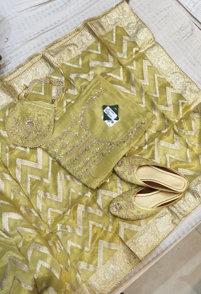 PAKISTANI SUIT PEICE FABRIC CRAPE WITH ACCESSORIES COLOUR CYBER GREEN.
