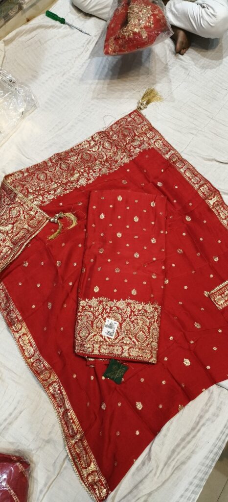 BRIDAL SUIT PEICE FABRIC BANARSI SILK COLOUR RED.