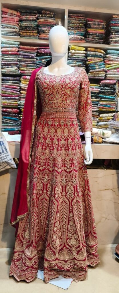 BRIDAL GOWN ZARI WITH MIRROR COLOUR RANI.