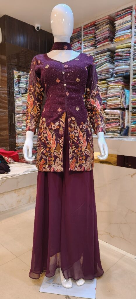 ALINA CUT SHARARA CHIFFONE & RESHAM WORK COLOUR- WINE.